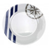 La décoration du service MARINA est très moderne avec ses rayures marines ainsi que le symbole emblématique de la rose des vents.