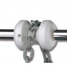 Possibilité de compléter cette poulie par un crochet d'arrêt de chaine.