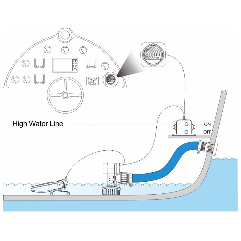 - Un interrupteur de précision active et désactive automatiquement les alarmes lorsque l'eau atteint des niveaux spécifiques