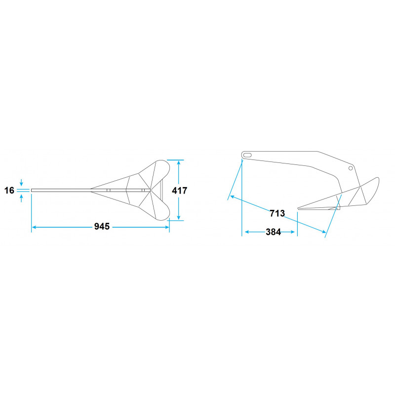 Construite en acier haute teneur en manganèse, l’ancre LEWMAR Delta® offre une résistance maximum.