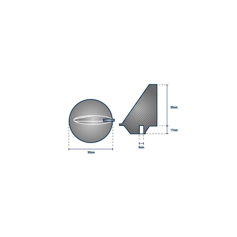 Composée à 99.996% de zinc, l’anode sera donc attaquée à la place des autres pièces métalliques en contact avec l’eau de mer.