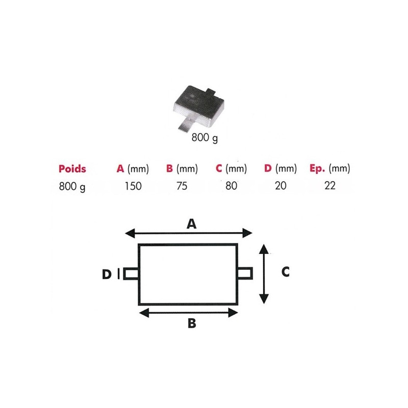 Anode en zinc, sans danger pour l'environnement et en conformité avec la norme marine nationale NC 431990 STCAN 22.09.1960.
