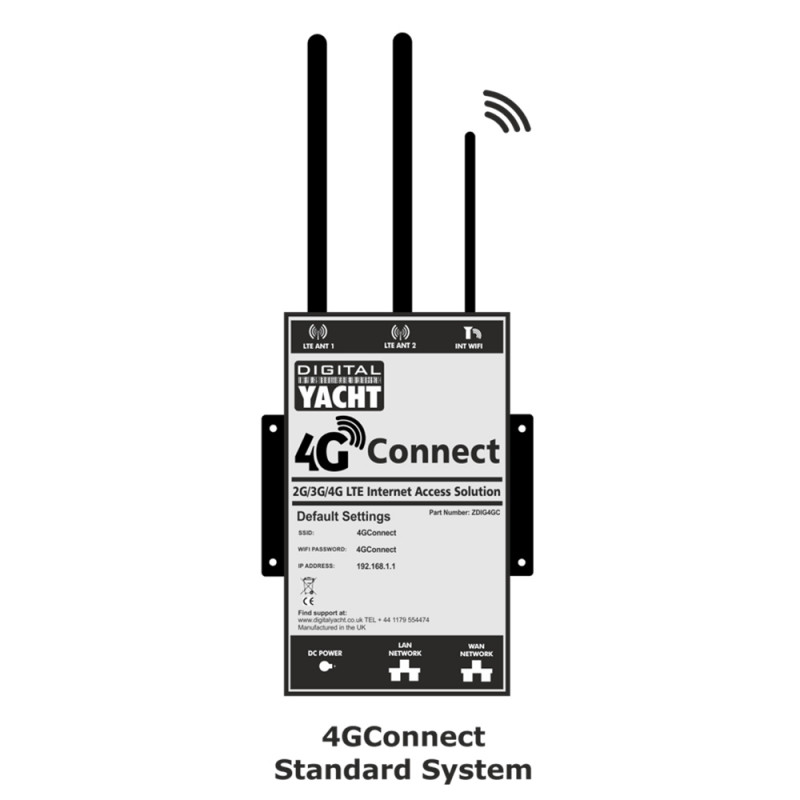 4G Connect est la solution 4G (LTE) de Digital Yacht pour obtenir internet à bord des bateaux. Ce produit utilise la dernière technologie MIMO avec deux antennes pour un accès rapide et pour une longue portée. De plus, ce produit a un routeur intégré pour partager la connexion internet avec les appareils sans fil. L’interface a aussi un port LAN et WAN pour connecter une antenne Wi-Fi longue portée ou pour connecter un système satellitaire.