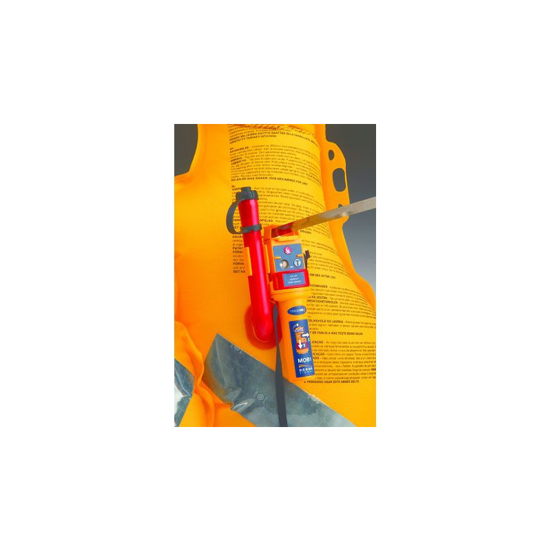 La balise MOB1 est conçue pour être fixée au gilet de sauvetage. Elle est ainsi compatible avec tous les gilets de sauvetage automatiques, même les plus compacts. Elle se déclenche simultanément et automatiquement au gonflage du gilet, et commence à émettre des signaux d'alerte après seulement 15 secondes. Il est également possible de la déclencher manuellement en pressant le bouton prévu à cet effet.
