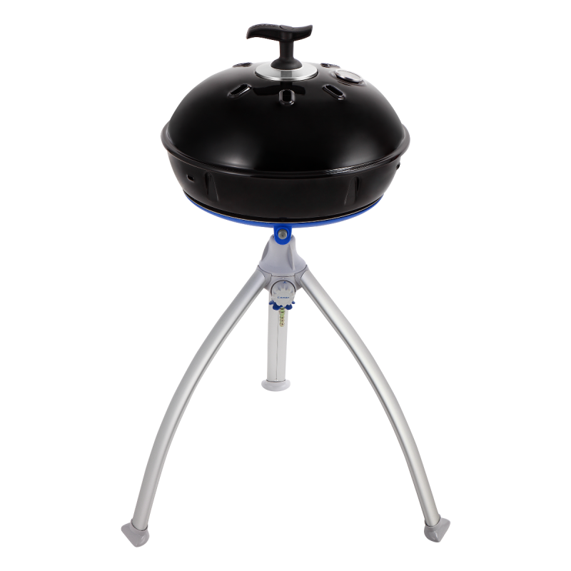 Le Grillo Chef est un barbecue au gaz compact et robuste. Monté sur un trépied qui peut être dévissé pour être rangé dans le sac de transport compris, ce barbecue peut être emmené partout.