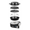 Malgré son format réduit, le Safari Chef 30 Compact est extrêmement polyvalent grâce aux différentes surfaces de cuisson incluses : un support de casserole, une plaque de cuisson (Plancha), une grille et un plat (couvercle). Vous pouvez facilement faire cuire une soupe ou des pâtes sur le support de casserole.