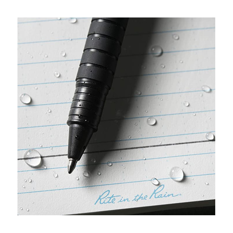 Le stylo tout temps Rite in the Rain à clic durable et fonctionnel par tous temps est un stylo qui fonctionne dans des conditions extrêmes. La cartouche d’encre sous pression écrit à l’envers et fonctionne à des températures de -30° à 250°, sous l’eau et sous n’importe quel angle. L’encre exclusivement utilisé dans les stylos Rite in the Rain ne saute pas. Elle permet également d’écrire à travers l’eau, la sueur, la graisse et la boue sans s’agglutiner ni tâcher.