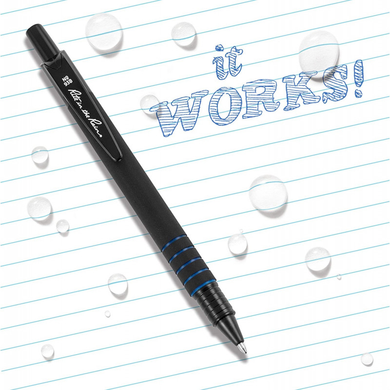 Le stylo tous temps Rite in the Rain à clic durable et fonctionnel par tous temps est un stylo qui fonctionne dans des conditions extrêmes. La cartouche d’encre sous pression écrit à l’envers et fonctionne à des températures de -30° à 250°, sous l’eau et sous n’importe quel angle. L’encre exclusivement utilisé dans les stylos Rite in the Rain ne saute pas. Elle permet également d’écrire à travers l’eau, la sueur, la graisse et la boue sans s’agglutiner ni tâcher.