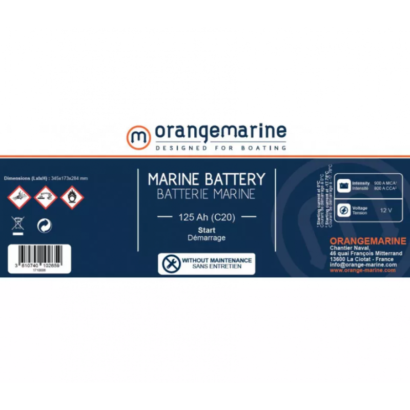 Batterie marine 12V de démarrage - ORANGEMARINE 125 Ah