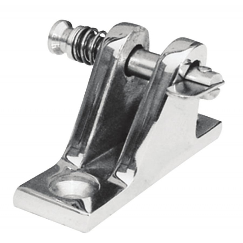 Platine inox incliné permettant de fixer le bimini sur ce support.