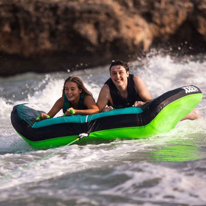 Bouée tractée pour 2 personnes, idéale pour que vous profitiez un maximum en famille ou entre amis de la belle saison. Elle dispose de deux ailes pour vous procurer des sensations incroyables lors du décollage ! Par ailleurs, cette bouée est d’une grande solidité, et donc, faite pour durer !