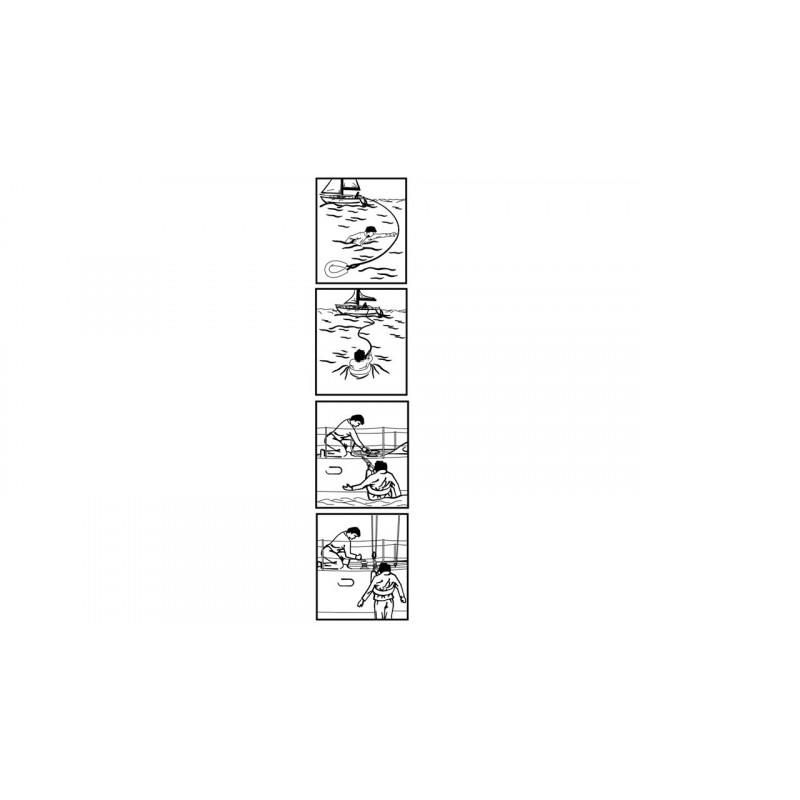 Pour l'utiliser, il vous suffit d'ouvrir le sac, de retirer la ligne de vie puis de la lancer vers l'homme à la mer.