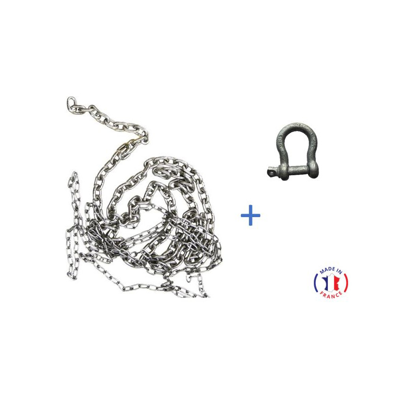 Pack 20 m chaîne galva calibré ISO 4565 + manille lyre, idéal pour les mouillages.