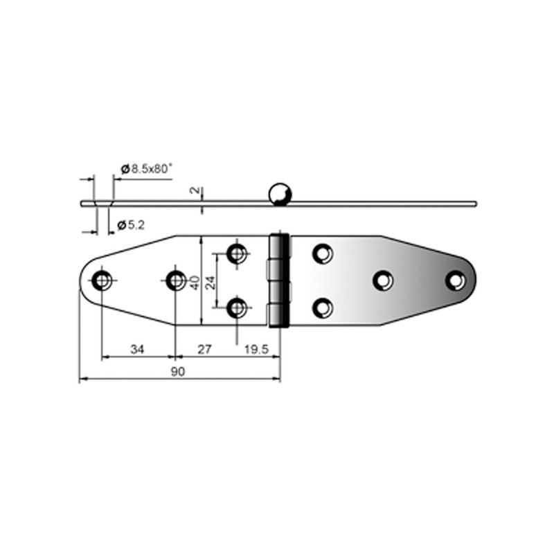 Charnière 180 x 40 mm - ORANGEMARINE