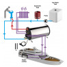 Le système permet aussi de chauffer l'eau avec deux source de chaleur différentes (chaudière, moteur, panneau solaire).