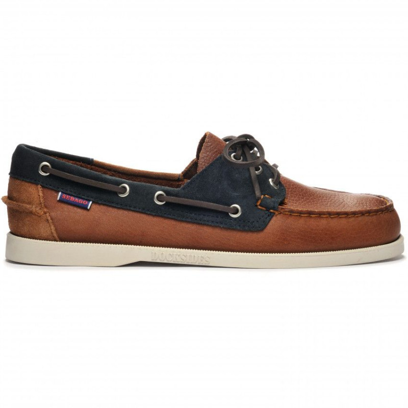 Chaussure bateau Portland Three Eyes Lea bleu marine cognac SEBAGO