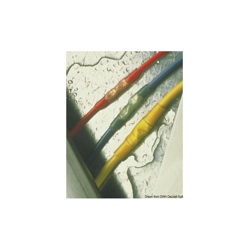 Constitué d‘un cylindre à presser recouvert d’une gaine thermorétractable avec adhésif interne. Une fois la rétraction effectuée, on obtient une jonction résistante et totalement étanche grâce à l’adhésif interne.