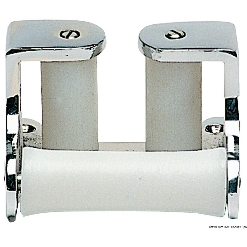 Davier pour chaîne ou amarre de proue triple réa. Coulisse parfaitement. Réas interchangeables en nylon. Boîtier en laiton chromé.