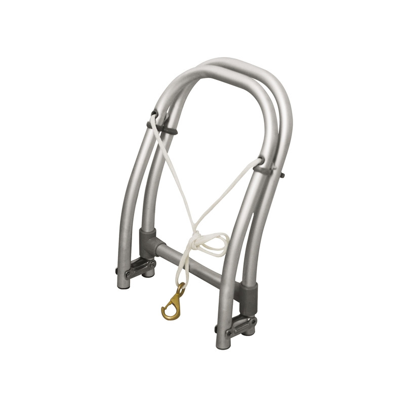 Echelle pliante permettant un gain de place à bord du bateau lorqu'elle n'est pas en place.
