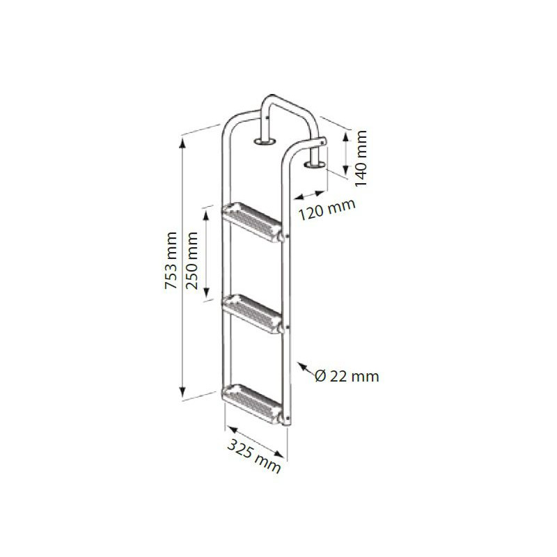 La forme particulière des échelons, légèrement courbée et arrondie tout en conservant de la profondeur pour bien dégager le pied du tableau arrière ou du franc-bord, augmenter la rigidité de l’échelle et faciliter la remontée à bord.