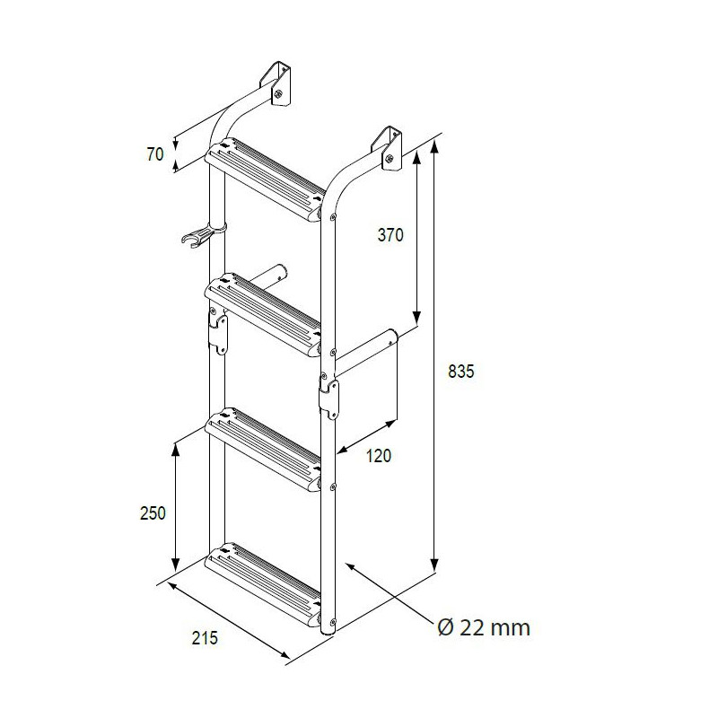 Echelle inox pliable sur élément inférieure 2 marches en parties haute fixe et 2 marches en partit basse (amovible)