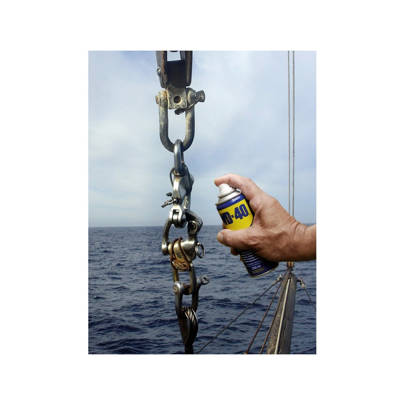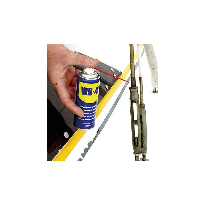 WD 40 protège le métal de la rouille et la corrosion, libère les mécanismes bloqués, repousse l’humidité et lubrifie les petits mécanismes.