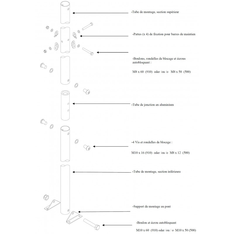 Support pour éolienne RUTLAND 913 et 914 composé de 2 tubes inox de 1,2m permettant de monter l'éolienne sur le pont.