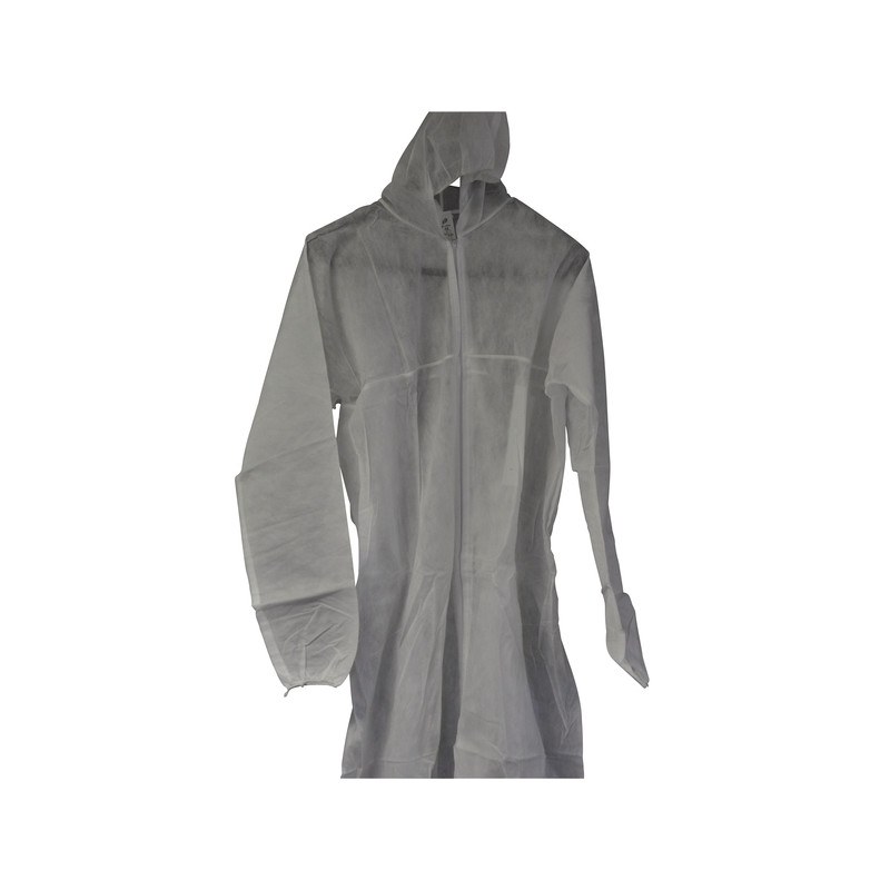 Combinaison anti poussières avec cagoule intégrée.