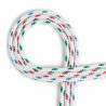 Cordage disponible au mètre et en bobine de 100m, en couleur Blanc avec fils Bleu, Rouge ou Vert.