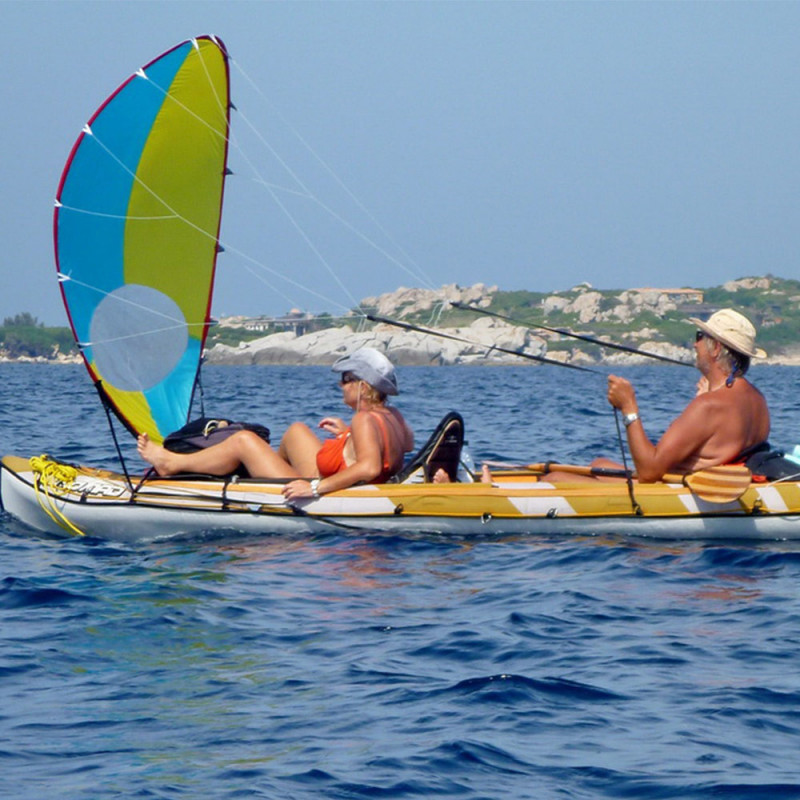 Cette voile pour kayak est idéale pour l'aide à la propulsion au vent arrière. Elle convient parfaitement pour les kayaks bic gonflables mais aussi bic rigide et tout autre marque. Cette voile doit être utilisée en loisirs et randonnée, montage et démontage rapide type tente 3‘'. Compatible pour tous kayak Sit-in et Sit-on-top, auto-régulation de puissance par souplesse de structure. Simple, efficace, elle dispose d'un prix accessible.