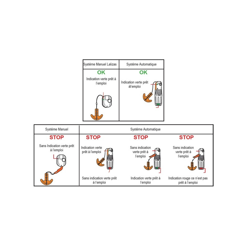 Quand tous les indicateurs VERTS sont présents sur le mécanisme de votre gilet, il n’est pas nécessaire de remplacer des pièces. Mais, s’il y a un indicateur ROUGE présent sur le mécanisme vous devez remplacer les pièces appropriées.