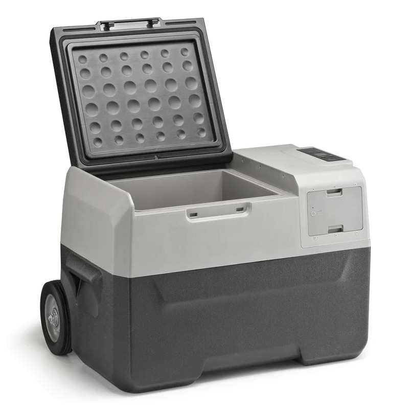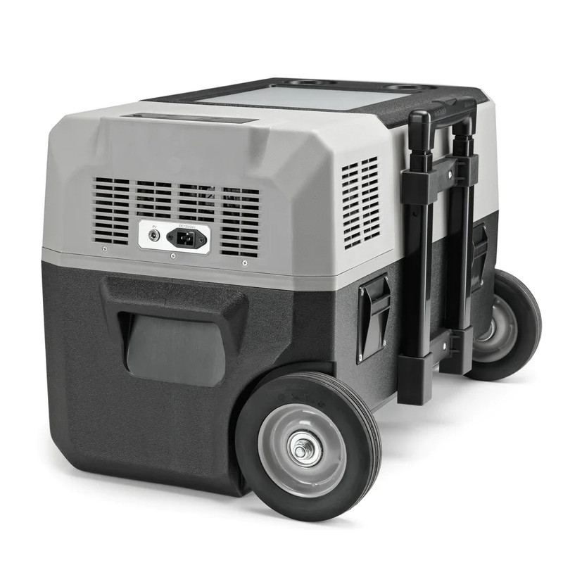 Equipé d'un compresseur compact, cette glacière garantit de hautes performances de réfrigération même à des températures élevées. Elle intègre une paire de roues en caoutchouc et une poignée télescopique amovible pour la transporter plus facilement.