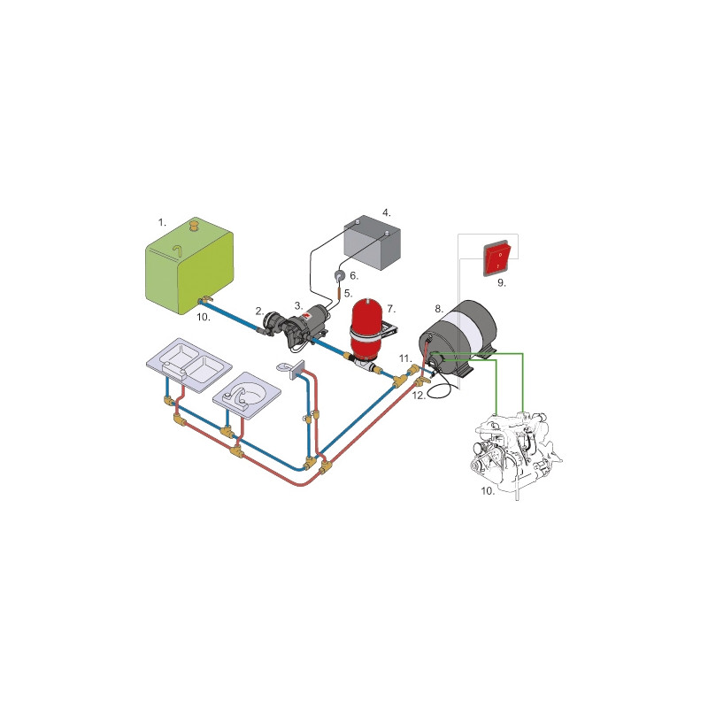 Il permet de fournir de l’eau sous pression dans votre bateau grâce à une pompe qui se met automatiquement en route lorsque l’on ouvre un robinet.