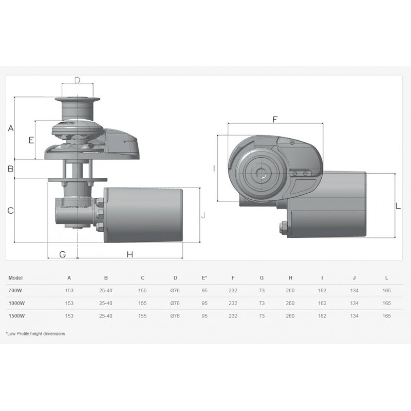 Caractéristiques techniques du guindeau électrique X2 avec poupée d’une puissance de 1500W :