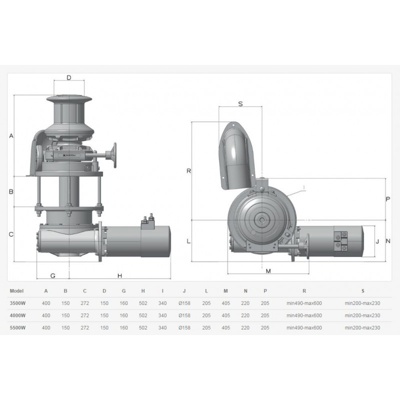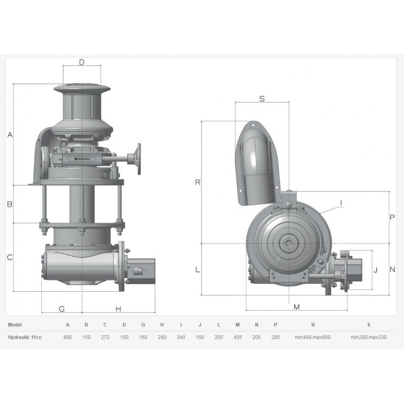 Caractéristiques techniques du guindeau hydraulique ERCOLE VERTICAL avec poupée :