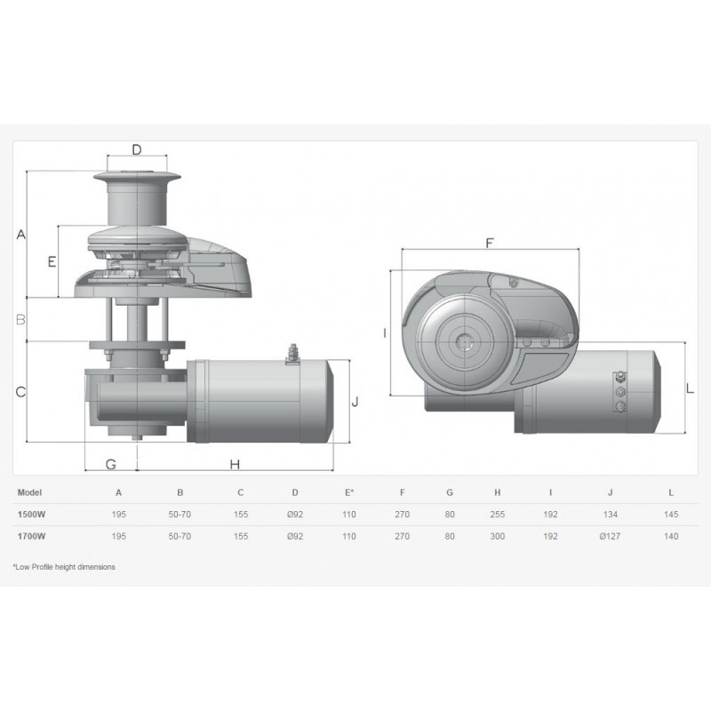 Caractéristiques techniques du guindeau électrique X3 sans poupée d’une puissance de 1500W :