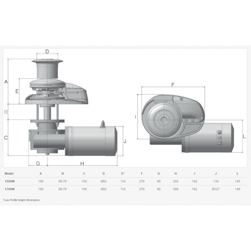 Caractéristiques techniques du guindeau électrique X3 avec poupée d’une puissance de 1700W :