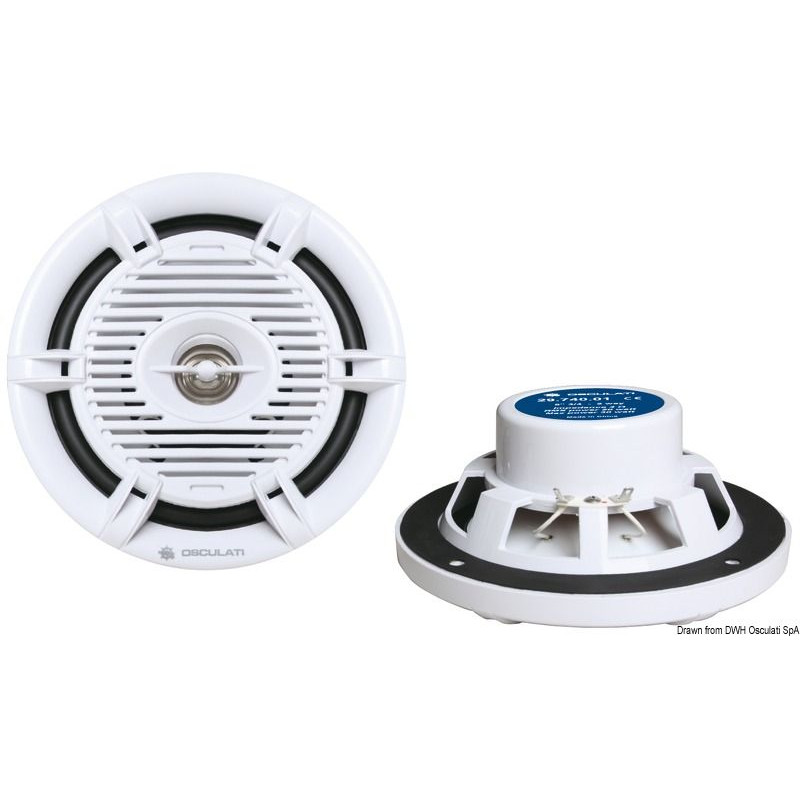 Le haut-parleur 2 voies Osculati est un haut-parleur qui s'intègre facilement dans n'importe quel système audio. Conçu pour une résistance en milieu marin, ce haut-parleur diffuse parfaitement le son et la musique. Le système à 2 voies permet une meilleure réponse aux hauts et bas, pour une qualité de son améliorée. Sa taille facilite son installation et permet de l'installer presque partout. Complètement waterproof et résistant aux UV, vous pourrez l'installer à l'intérieur ou à l'extérieur. Pour une installation dans le poste de pilotage, veillez à laisser une distance minimum de 1,1 mètre avec le compas, pour éviter un dérèglement dû au magnétisme.