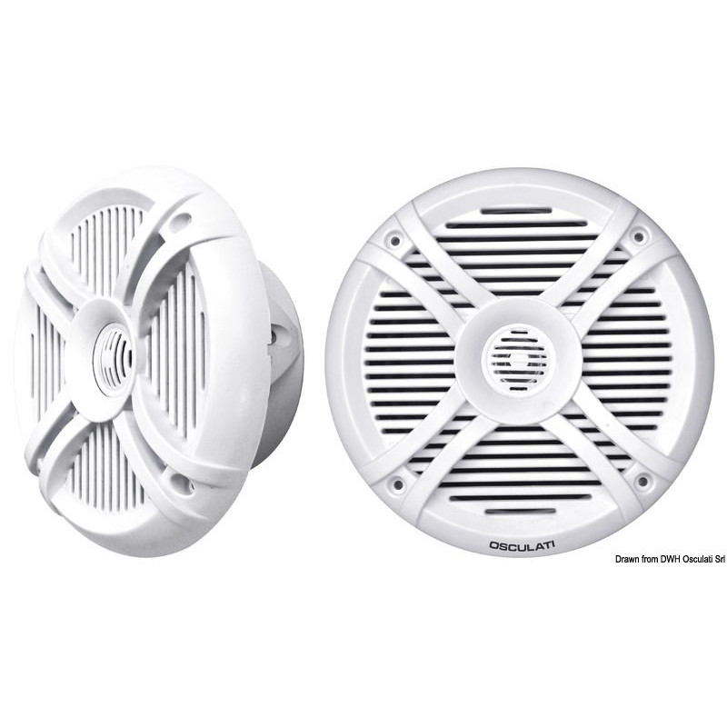 Le haut-parleur 2 voies avec éclairage LED Osculati est un haut-parleur qui s'intègre facilement dans n'importe quel système audio. Conçu pour une résistance en milieu marin, ce haut-parleur diffuse parfaitement le son et la musique. Le système à 2 voies permet une meilleure réponse aux hauts et bas, pour une qualité de son améliorée. Sa taille facilite son installation et permet de l'installer presque partout. Complètement waterproof et résistant aux UV, vous pourrez l'installer à l'intérieur ou à l'extérieur. Le haut-parleur est doté d'un éclairage LED RGB multi-couleur programmable à l'aide de la télécommande (fournie) prévue à cet effet. Pour une installation dans le poste de pilotage, veillez à laisser une distance minimum de sécurité avec le compas, pour éviter un dérèglement dû au magnétisme.