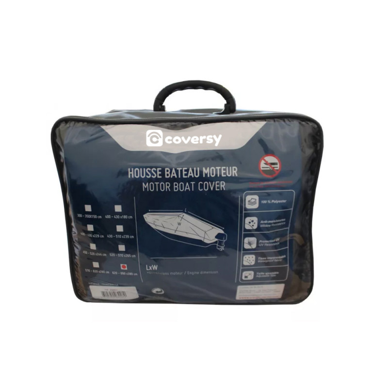 Conçue en polyester enduit 300D imperméable et anti-moisissure, la housse Coversy vous garanti une protection durable de votre bateau face aux intempéries de l’hivernage.