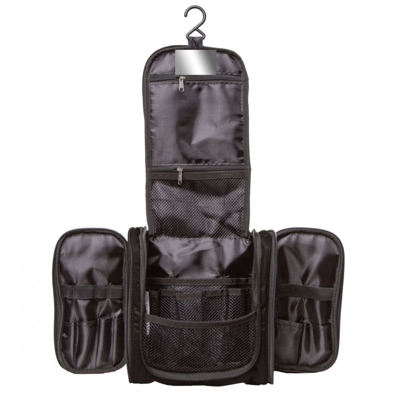 Cette trousse de toilette s'avère très pratique, suspensible grâce à son crochet vous pouvez l'accrocher n'importe où !