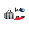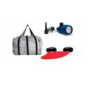 Le kayak gonflable / Housse de transport / Un gonfleur à pied / Deux pagaies / Un kit de réparation (colle et deux patchs) / Un manuel d'utilisation traduit en plusieurs langues.