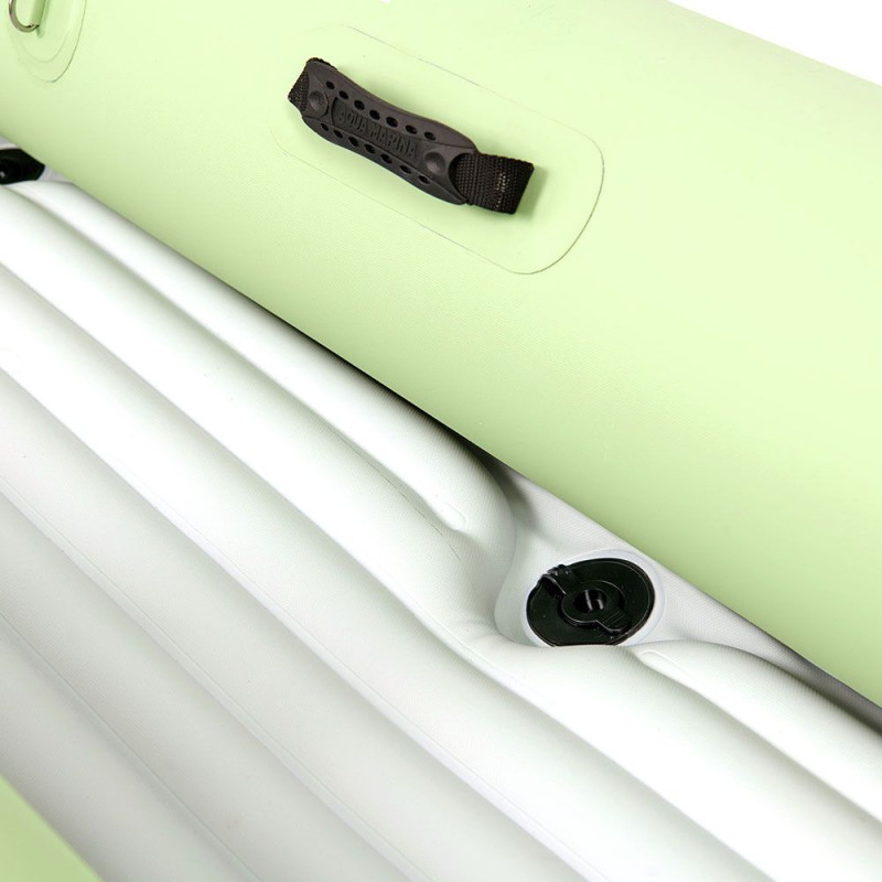 | Le pare-vague vous protégera contre les éclaboussures et ses poignées de transport en caoutchouc seront idéales pour transporter votre kayak une fois gonflé. |