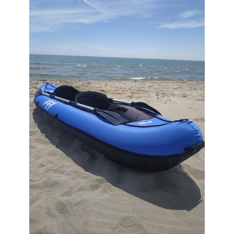 C'est un kayak gonflable parfait pour une utilisation loisir et pour des randonnées de 1 à 2 heures: lac, rivière calme, étang, mer (bande des 300 mètres).