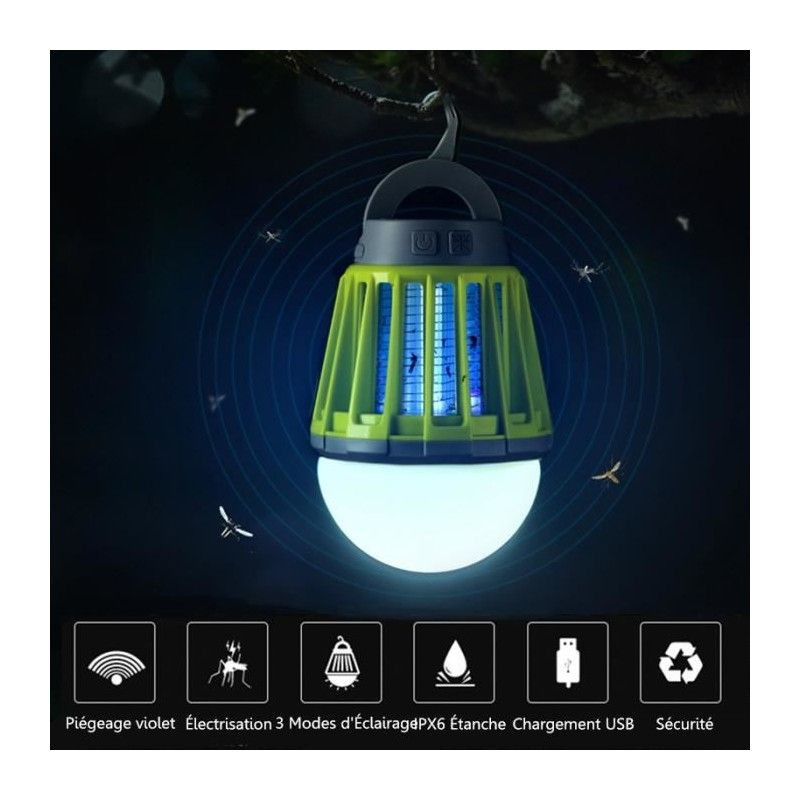 Cette lanterne à led, rechargeable par port USB, s'utilise aussi bien en intérieur qu'à l'extérieur. Dans votre jardin, en camping ou bivouac, cette lampe anti-moutique est pratique et économique. Elle est étanche et lavable, résistante aux intempéries, elle éliminera les moustiques sans bruit et sans produits chimiques !