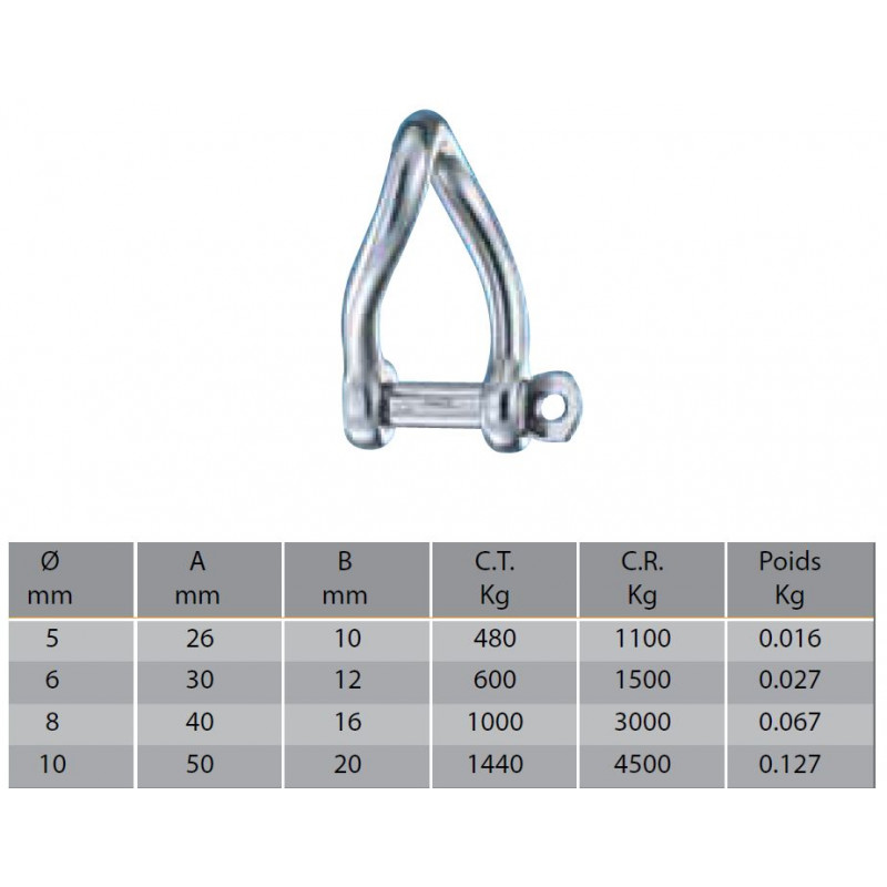 Caractéristiques de la manille autobloquante torse WICHARD :