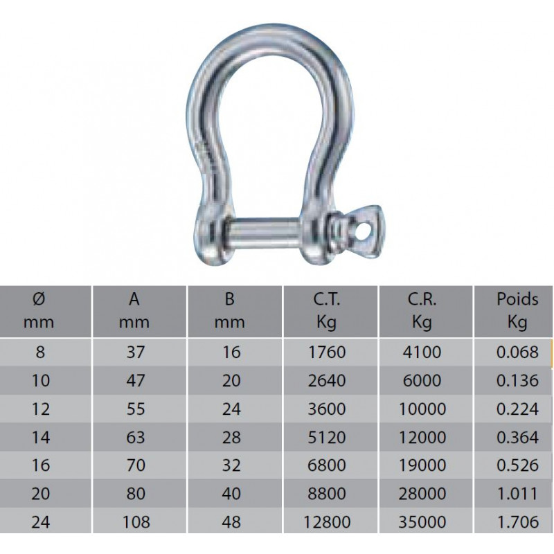 Caractéristiques de la Manille inox HR lyre WICHARD :