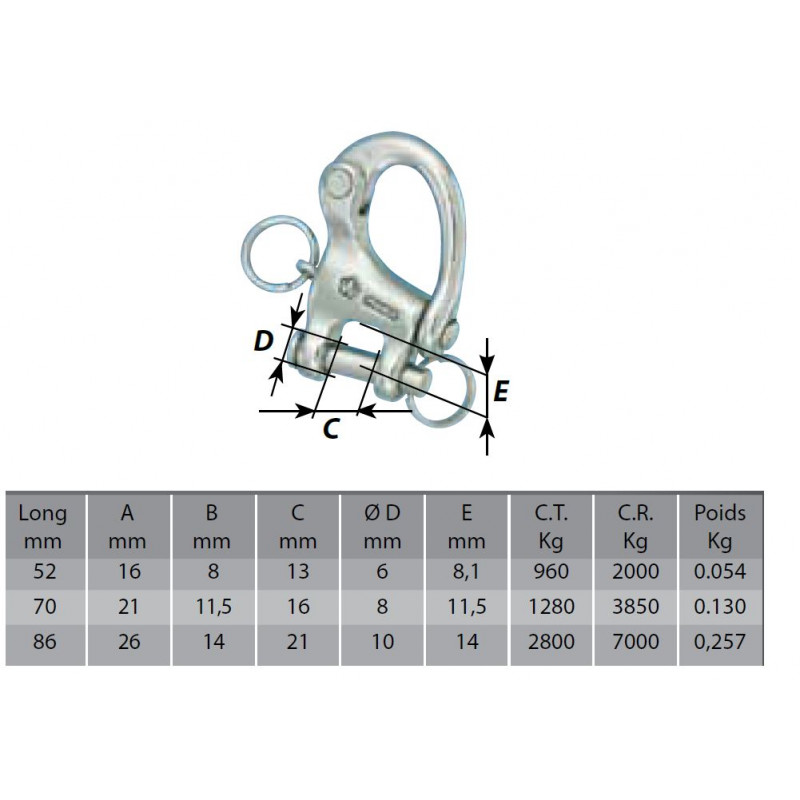 Caractéristiques du Mousqueton de drisse à chape WICHARD :