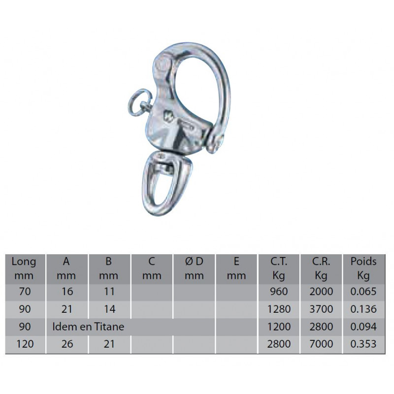 Caractéristiques du Mousqueton de drisse à œil émerillon WICHARD :