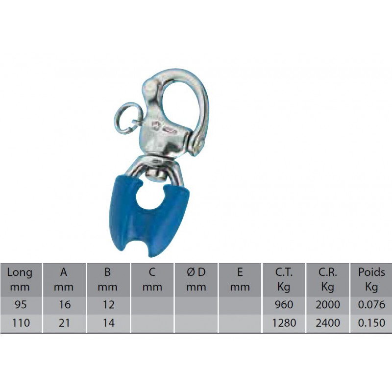 Caractéristiques du Mousqueton de drisse émerillon cosse WICHARD :